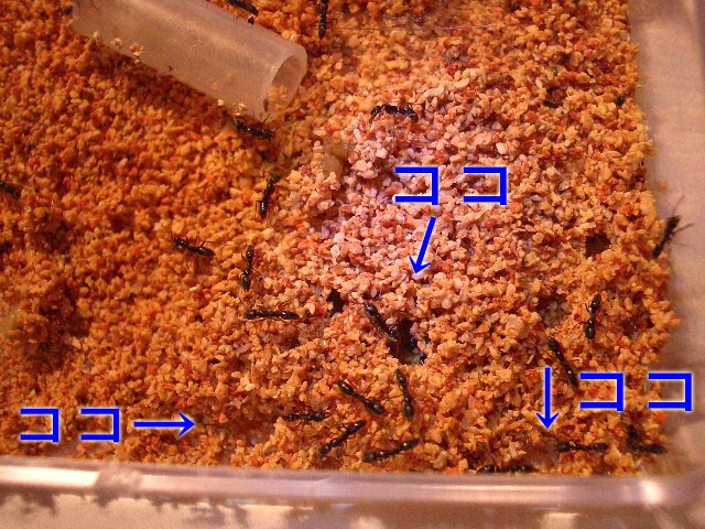 オオハリアリさんは、やっぱり卵がないから女王様はいないんやろうけど…。