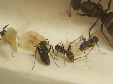 ありんこの幼虫はご飯は口移しでもらって、動かないもんと思ってたから、