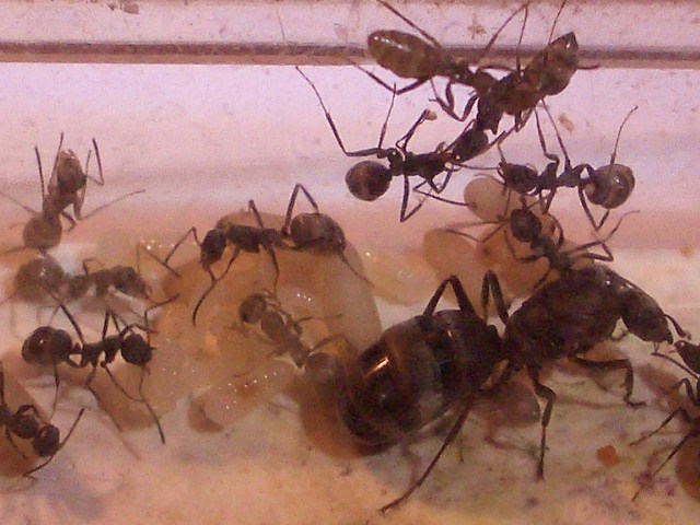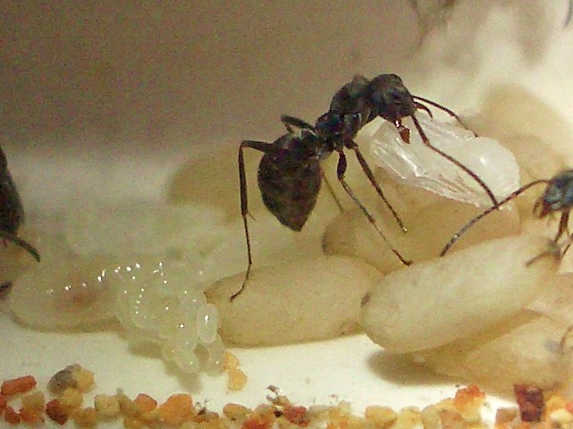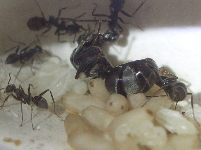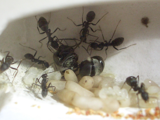 死んじゃった女王様アリーを餌場に運び出してから、